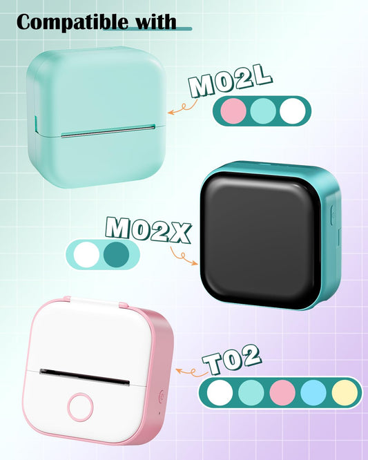 Memolife M02L Mini Inkless Sticker Printer - Inkless Printer for iOS & Android, Bluetooth Printer with 1 Roll Non-Adhesive Paper, Mini Pocket Printer for DIY Creation, Study Notes, Mini Photo Printer