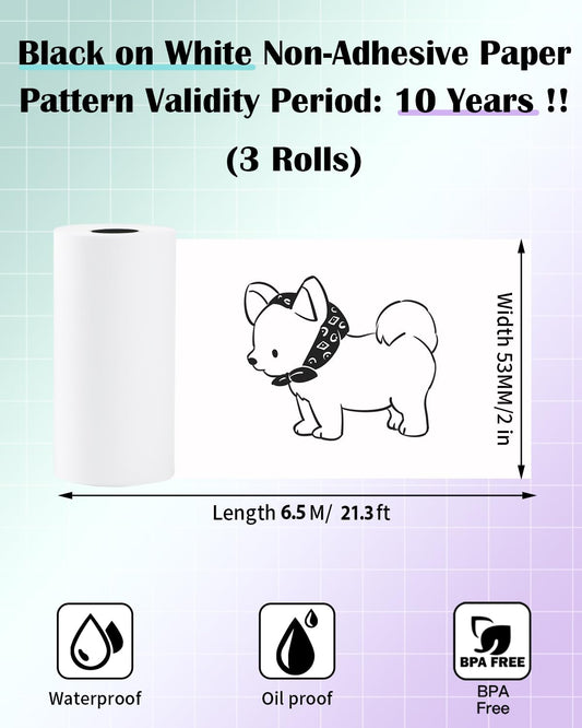 Memolife M02L Printer Paper Roll - White T02 Non-Adhesive Paper M02X Paper -Validity Period:10 Years, Memolife M02L Paper Compatible With Phomemo Memoqueen Memoking T02 Paper, 3 Rolls(2in*21.3ft/Roll)