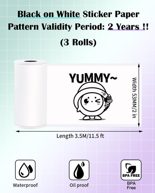 White T02 Printer Sticker Paper - Validity Period:10 Years - Memolife M02L Paper M02X Adhesive Paper, Memolife M02L Paper Compatible with Phomemo T02 Paper - 3 Rolls & 2in*11.5ft/Roll