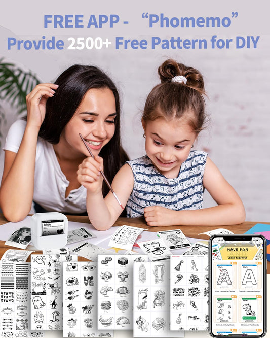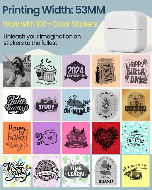 2024 New Year Gifts Idea - Memolife Sticker Maker Machine - Mini Thermal Printer with 6 Rolls Non-Adhesive Paper (2in*21.3ft/Roll), Inkless Printer for iPhone & Android, Portable Mini Printer for DIY