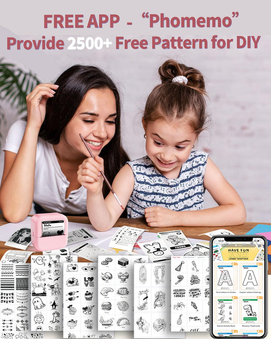 Memolife Mini Thermal Printer - Mini Pocket Printer with 6 Rolls Non-Adhesive Paper(2in*21.3ft/Roll), Mini Photo Printer for iPhone &Android, Portable Printers Wireless for Travel, Work, 2024 Fun Gift