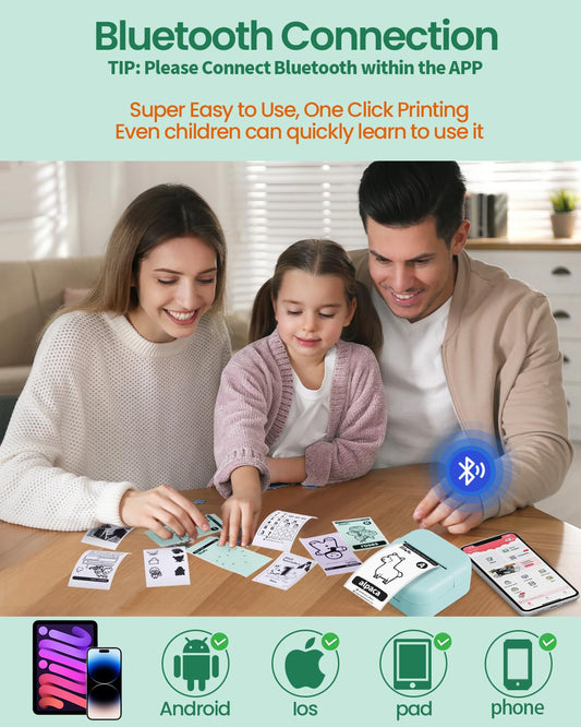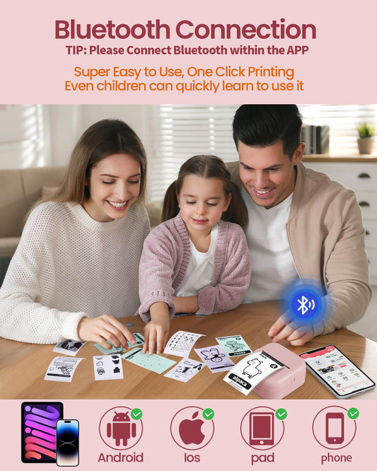 mini pocket printer, Memolife Mini Sticker Printer with 6 Rolls Non-Adhesive Paper (2 in*21.3 ft/Roll), Mini Printer Compatible with iPhone & Android, Pocket Printer for Note, DIY